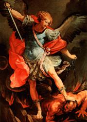 A la seule mention de Saint Michel, Satan commença à reculer, puis, en entendant la prière adressée au saint, le démon sembla brusquement en proie à quelque torture. Il redoutait particulièrement l’invocation à Saint Michel, communément récitée en fin de messe: » Saint Michel Archange défendez-nous dans le combat; soyez notre secours contre la perfidie et les embûches du démon. Que Dieu exerce sur lui Son empire, nous le demandons en suppliant; et vous, prince de la milice céleste, refoulez en enfer, par la Vertu divine, Satan et les autres esprits malins qui errent dans le monde pour la perte des âmes. Amen. «