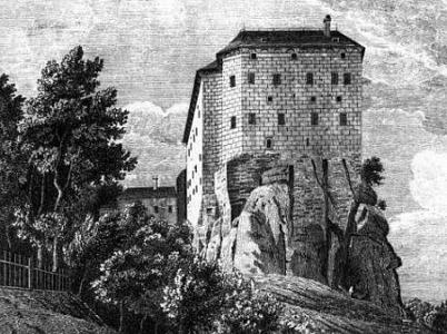 Les légendes entourant le site sont plus vieilles que le château. Des preuves archéologiques existent d’une présence celte dans l’antiquité et de tribus slaves au VIe siècle. Au IXe siècle, une petite forteresse de bois surplombait déjà la colline, qui est mentionnée par Vaclav Hajek dans sa vaste chronique thèque publiée en 1541. Dans son ouvrage, il fait état d’une légende, l’histoire d’une fissure en haut de la falaise de calcaire, un trou incroyablement profond, qui était le théâtre de terribles apparitions. Les habitants de la région l’appelaient le Trou de l’Enfer, et ils évitaient de s’en approcher. Certains prétendaient qu’il avait été creusé par le diable, d’autres que des alchimistes l’avaient percé, mais tous s’accordaient pour dire qu’à la nuit tombée, des créatures maléfiques, mi-humaines mi-bêtes, en jaillissaient, massacrant le bétail et semant la terreur, et que tous ceux qui s’aventuraient près de la fosse couraient le danger d’être transformés en l’un de ces démons. Ils avaient déjà essayé de combler le trou avec des pierres, sans succès. Tout ce qu’ils jetaient dedans disparaissait inexorablement dans le néant, sans autre résultat.