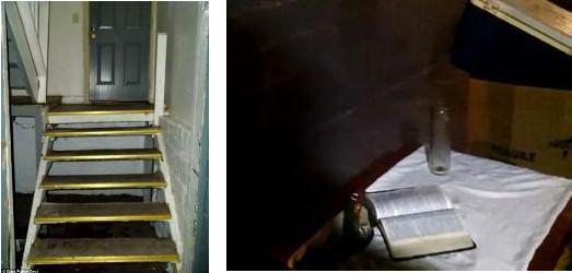Au rez-de-chaussée se trouvaient trois chambres à coucher, un salon, une salle de bain et une petite cuisine américaine. Dans la cuisine, une porte s’ouvrait sur un escalier en béton qui conduisait à un sous-sol recouvert de terre battue. Directement sous l’escalier, d’où sortaient les démons selon les occupantes de la maison, le béton était fendu, comme s’il avait été brisé, et ce détail intrigua les trois policiers. L’autel de fortune de Latoya trônait toujours au centre de la pièce, dont les murs étaient recouverts des traces du sel que la jeune femme avait jeté afin de dissuader les créatures maléfiques de se montrer. Tout au long de la visite l’un des policiers enregistra les discussions mais quand il voulut écouter la bande il s’aperçut que quelqu’un s’était glissé dans la conversation, les interpellant d’un « Hey ! » très clair alors qu’ils se trouvaient dans la cave. Le même officier avait pris de nombreuses photographies de la maison et sur l’une d’entre elles, dans un angle de l’escalier du sous-sol, dans le coin supérieur droit, apparaissait une étrange silhouette blanche. Un peu plus tard, des agrandissements de la photo révélèrent que cette silhouette présentait un visage et que non loin d’elle se trouvait une autre silhouette verdâtre, qui semblait celle d’une femme. Tous ces éléments furent consignés dans les dossiers de police.