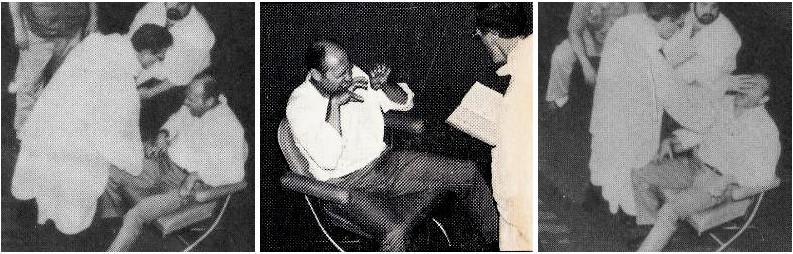 Deux des policiers sautèrent immédiatement de leurs sièges pour tenter de maitriser le possédé, mais Mgr McKenna leur ordonna de retourner à leurs places et ils se rassirent. L’évêque sortit alors un crucifix de sa soutane mais quand il voulut l’appliquer sur le front de Bill, il devint fou furieux. Se levant précipitamment de sa chaise, il se mit à grogner contre l’évêque, prêt à se jeter sur lui, et Mgr McKenna se replia rapidement derrière l’autel. Les yeux hagards, Bill s’avança alors vers le prêtre qui se dressait devant lui, immobile, brandissant sa croix et récitant des mots en latin. Mgr McKenna s’adressait au démon qui semblait posséder le malheureux: » D’où viens-tu? Qu’est-ce qui te retient ici? Arrière Satan! Laisse le tranquille! «