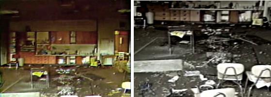 Dès qu’ils aperçurent les premiers enfants sortir par les fenêtres, les familles qui attendaient anxieusement à l’extérieur forcèrent le barrage des policiers qui encerclaient le bâtiment et elles se précipitèrent vers eux, les attrapant et les emmenant rapidement à l’abri derrière les camions des pompiers. A l’intérieur, le drame se poursuivait. En entendant l’explosion, David Young se précipita dans la salle de classe, un pistolet dans chaque main, et il arriva juste au moment où John Miller, le professeur de musique, tentait de s’enfuir. Alors sans hésiter, il lui tira une balle dans le dos, et l’homme s’effondra. Puis, comme sa femme n’était pas toujours morte mais qu’elle se tordait de douleur sur le sol, il mit fin à ses souffrances d’un coup de pistolet et retournant l’arme contre lui, il se suicida.