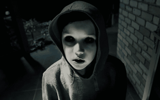 En 2017, un enquêteur du paranormal qui pensait sa propriété hantée, a installé une caméra de surveillance sous son porche. En voyant les images, il s’est exclamé : « Je ne peux pas croire que cela ait fonctionné. C’est un vrai enfant aux yeux noirs, c’est un véritable enfant aux yeux noirs ! » L’apparition en question est restée plus d’une heure à fixer l’intérieur de la maison avant de se volatiliser dans les airs.