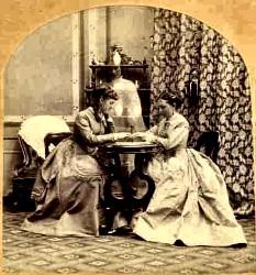 En 1948, Kate et Margaret Fox, deux sœurs qui habitaient à Hydesville, aux États-Unis, parvinrent à établir le contact avec un présumé esprit et les conversations qui s’en suivirent furent à l’origine d’un véritable mouvement de mode, donnant ainsi naissance au spiritisme moderne. Soudain, le monde entier se passionnait pour la communication avec l’Au-delà, amenant de nombreuses personnes à se découvrir, à tort ou à raison, des dons de médiumnité. Les médiums servaient d’intermédiaires entre le monde des esprits et celui des hommes, utilisant pour communiquer un certain nombre de méthodes, parmi lesquelles les tables tournantes. Lors d’une séance de spiritisme, les différents protagonistes s’asseyaient autour d’une table ronde, le médium servant de catalyseur, puis ils posaient délicatement leurs doigts sur la table et tentaient de rentrer en contact avec un esprit. Lorsque la table se mettait à bouger, trembler ou tressauter, alors la connexion était considérée comme établie. Les participants pouvaient poser différentes questions à l’esprit, qui répondait en frappant un certain nombre de coups sur le sol par l’intermédiaire des pieds de la table.