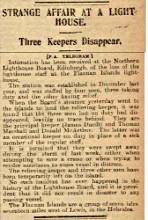 Durant toute une année la lumière rassurante du phare éclaira les eaux glacées des Iles Flannan puis brusquement, dix jours avant Noël, elle s’éteignit. Le 15 décembre, le capitaine Holman, dont le navire venait de Philadelphie et se rendait à Leith, remarqua que la lumière du phare des Iles Flannan n’était pas allumée et en arrivant au port il envoya aussitôt certains de ses hommes prévenir les autorités, que personne n’avait encore alertées. Pourtant un homme, Robert McKenzie, était payé 8£ par an pour surveiller le phare avec un télescope mais depuis cinq jours la brume était si épaisse qu’il ne voyait plus rien. Comme le bateau l’Hesperus, qui amenait toutes les deux semaines le courrier et les vivres aux trois gardiens devait justement faire le voyage, la Northen Lighthouse Board demanda au capitaine de s’enquérir du problème mais par un malheureux hasard des vents violents se levèrent, empêchant le navire de prendre la mer.